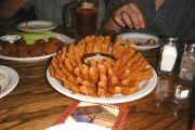 | これはオニオンフライ。巨大すぎる蓮の花のようなフライでとても六人でも食べ切れませんでした。 |