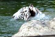 | 繁華街の真ん中に小さな公園?があり珍しいホワイトタイガーが泳いでた。やっぱ暑いのかな |