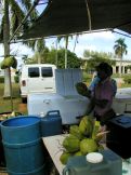 | その横で椰子の実を売っていた。このジュースを飲んだ後の白い実の部分も食べさせて貰ったけどこれがイカのようで美味しいんだー。しょうゆをつけてくれました。 |