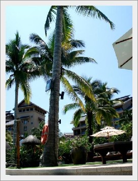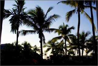 今朝も明るい日差しで目が覚めました。良い天気〜。 この一枚は部屋のテラスから撮った1枚。 朝日に椰子の木のシルエットが美しかったです。