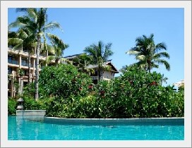 プールサイドにはこのような熱帯植物を抜けていきます。