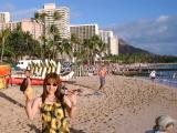 さー、無事にハワイに着いたよ〜。ホノルル空港では随分と入国審査に時間がかかりましたがそのままホテルに直行!!アーリーチェックインでダウン組は部屋で休息してましたが私は長旅の疲れも見せず!?いいえ〜、疲れてたんだけど引きずり回されたリキ・・・。