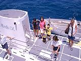 こちら樋口ファミリーです。何に乗っているかというと潜水艦です。たまたまオプショナルツアーを同じ日に申し込んでいたので潜水艦から出てきたところを輸送船の上からパチリ!ハワイにはもう3回一緒に行っている常連です〜。