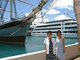 アロハタワーの横の湊にはいろいろな舟が停泊しています。THEバスに1ドル払ってオアフ島の景色の良いところを2時間くらい乗った後でここに辿り着きました。そのまま乗り続けてアラモアナまで戻ってきてもたったの1ドルなんだけど。あんまりバスの中が冷房が利いていてトイレに行きたくてダウンタウンで下車しちゃいました〜。安いTHEバスご利用の際は上着を忘れずに〜(^^;