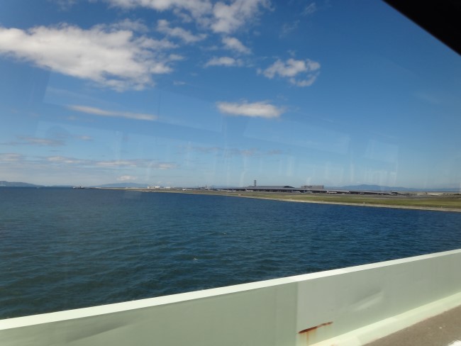 大和八木からリムジンバスで小一時間、関空が見えてきました。夏の出発は台風が心配ですが天気も良くて飛行機も心配なさそうで良かった〜〜 ほんと直前まで心配で心配で。。。 |