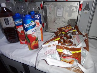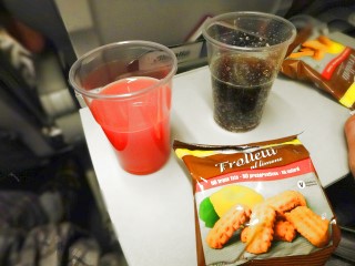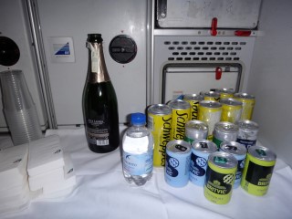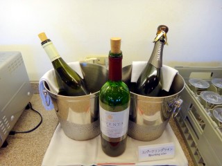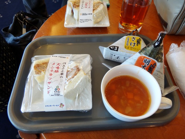 お酒類はもちろん生ビール にワイン 等豊富でしたし、おにぎりやパン、ミネストローネもありました。日本ってほんとサービスはいいわぁ〜 |