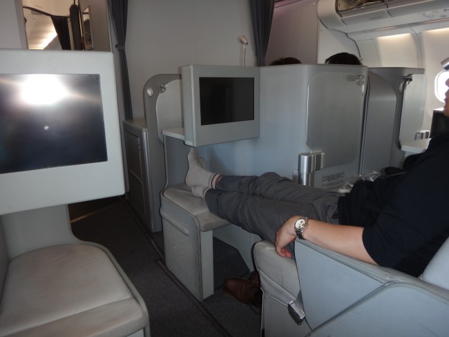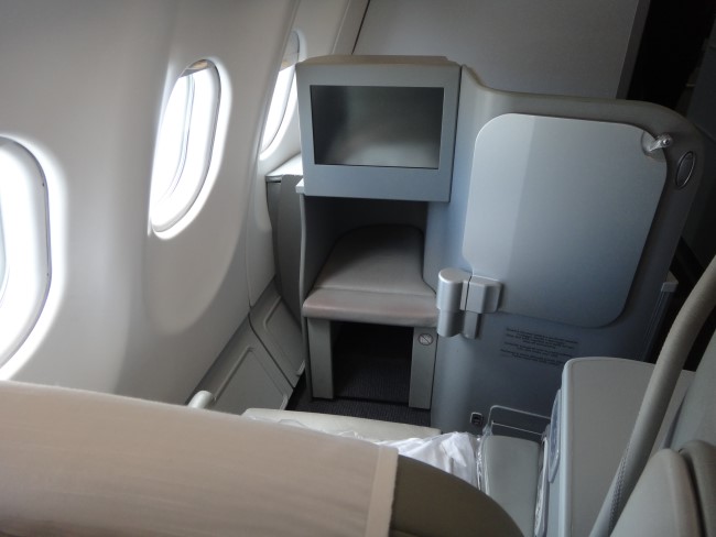 今年2012年の6月から最新鋭の飛行機に変わったので去年乗ったのとは全然シートが違う |