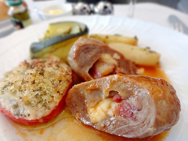 メインに当たるセコンドは「バーリ風子牛のカツレツ」か「アンコーナ風魚のフィレ」今回は二人で参加なので両方食べられる〜 メインのつけあわせに選べるのはポテトのロースト、ズッキーニのミント風 パン粉をのせたトマトのオーブン焼き |