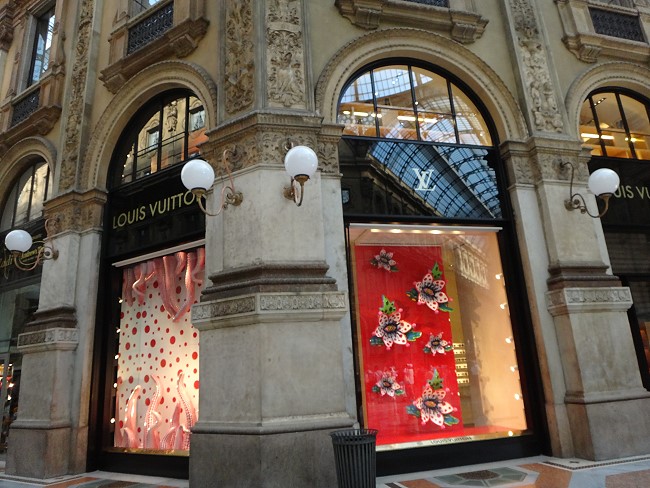 ルイ・ヴィトンの店はちょうど草間彌生さんとのコラボでタコイメージでした |