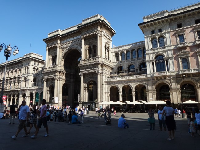 | アーケードをでて振り向くと今通ってきたヴィットーリオ・エマヌエーレ2世のガッレリア。なかなかの建築物です |