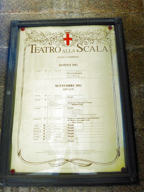 スカラ座の前にはこのようなパンフレットがあちこちに貼ってありました。演目かな |