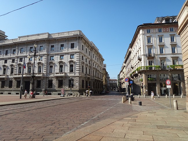 バスを降りて歩き始めると最初に見えてきたのはマリア・カラスの「椿姫」で有名なスカラ座 です。表向きには少し残念な感じの建物ですけどね |