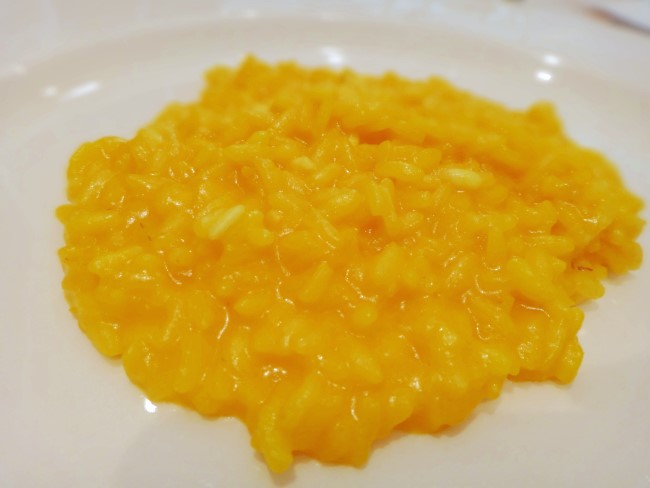 「ミラノ風リゾット」です 何て鮮やかな黄色いリゾットでしょう。卵かな と思いましたが黄色のわけはサフランでした。
