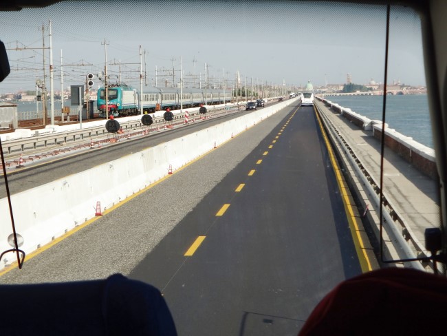 食事後、バスは一路ヴェネチア目指します。この橋を渡るともうそこはヴェネチアだーー  |