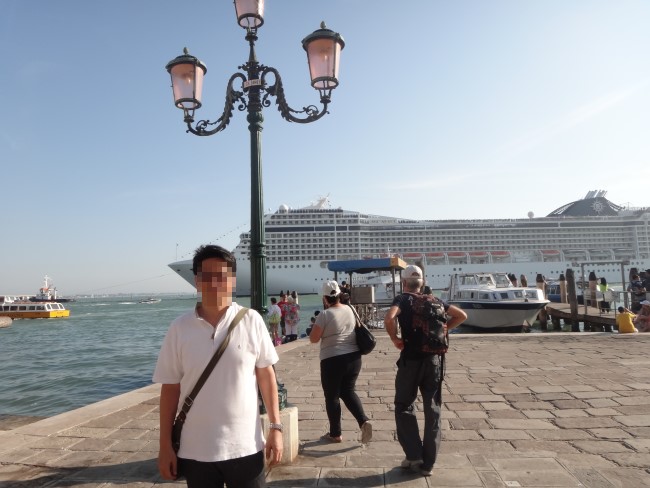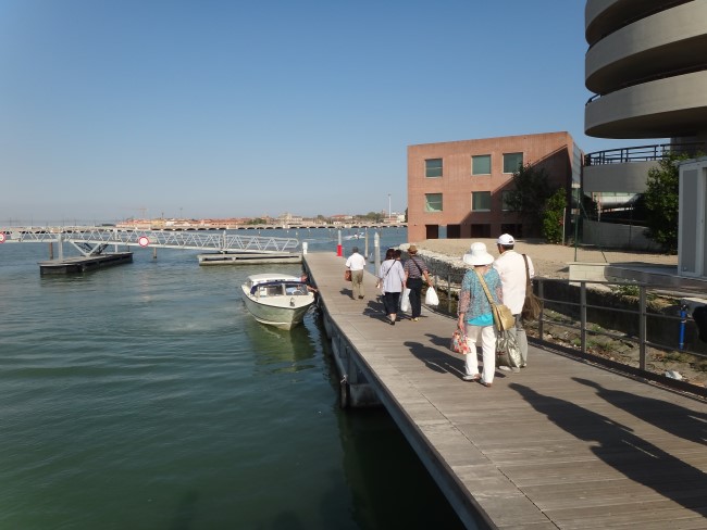 桟橋に到着し、ここからボートに乗換えヴェネチア本島に向かいます |