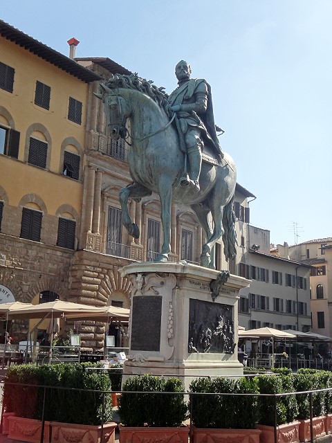 「シニョリーア広場」の「コジモ1世の乗馬像」 |