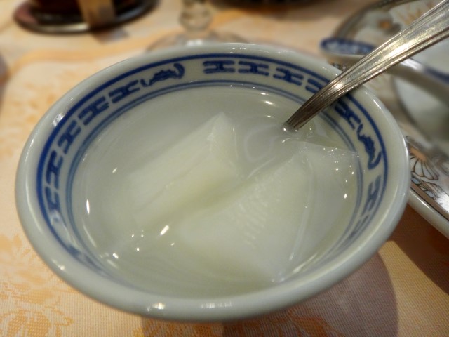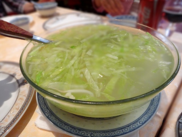 中華なので大皿で出てきます 料理の初めはレタスのスープ |