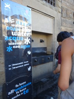 ジョットの鐘楼に登がったし、晴れ女の威力なのかアホ程天気がいいので喉がカラカラでした 日本みたいに自販機とかないので困っていたら「水」 って文字を発見