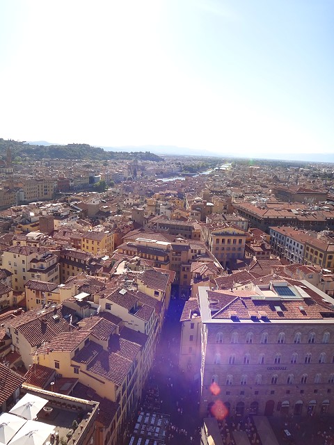 おお〜、眼下に今朝見学した「ウフィッツィ美術館」のカフェテラスが見えるじゃないか |