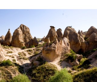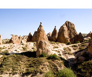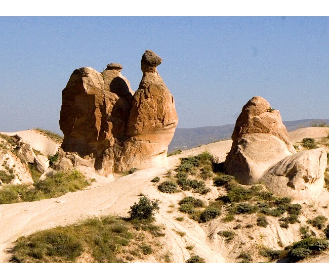 ホテルを出発し、昨日の夜にカッパドキアの洞窟ホテルプランに宿泊した2人を拾って最初の観光地、デブレントの谷へ。デブレントとはラクダという意味だそうで、その名の通りラクダにしか見えない奇岩が・・。