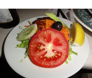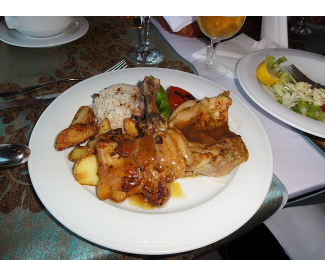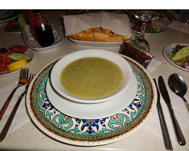 まずは野菜スープから。味よりこの器がトルコ風で良い感じ〜スープはライス入りのお粥風で食べやすいです。トルコの方はココに塩や唐辛子を入れて食べたりするそうです