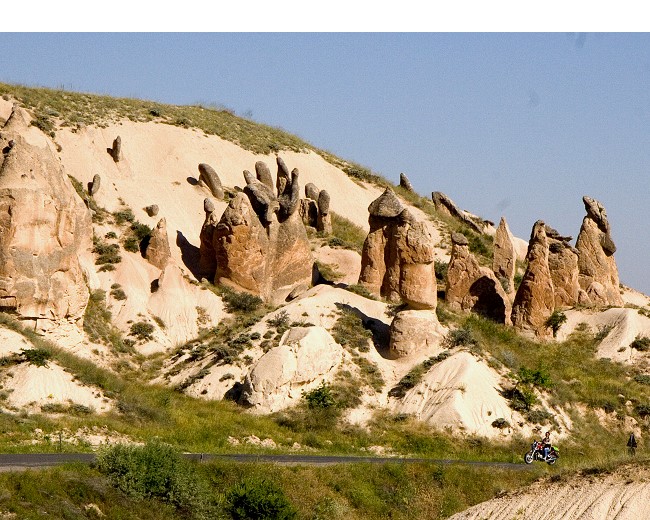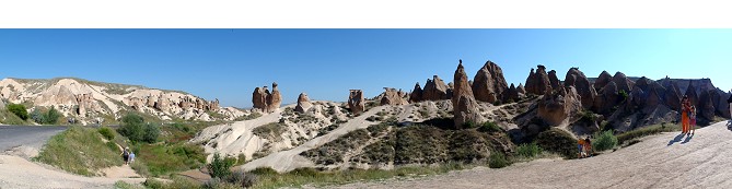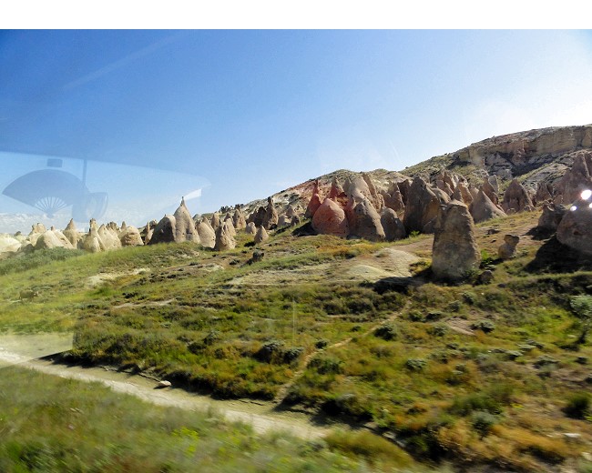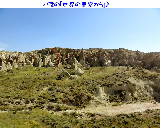 バスの車窓からもたくさんのキノコ岩が見えます。どこをとっても絵になる景色でカッパドキアがこんなに広大な見所満載の観光地だとは思っていませんでした。感動感動