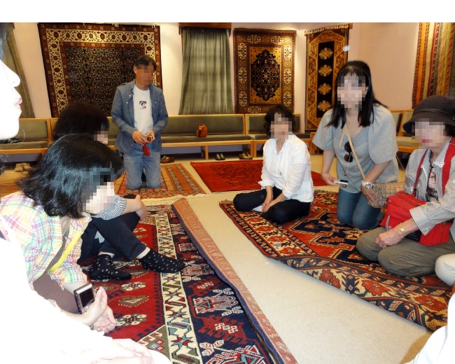 デブレントの谷からバスで移動し、次の観光はトルコ絨毯の工場見学です。織っている女性の隣に座らせて頂いて説明を聞きました。トルコ人はとても勤勉で昨日のトルコ石のお店もそうでしたが、こういう工場の従業員は本当に日本語を上手に話します。