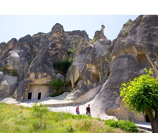 ここは古代ローマ帝国の迫害を受けたキリスト教徒たちが、奇岩を掘り、隠れ住んでいた場所を保存、展示している場所です。