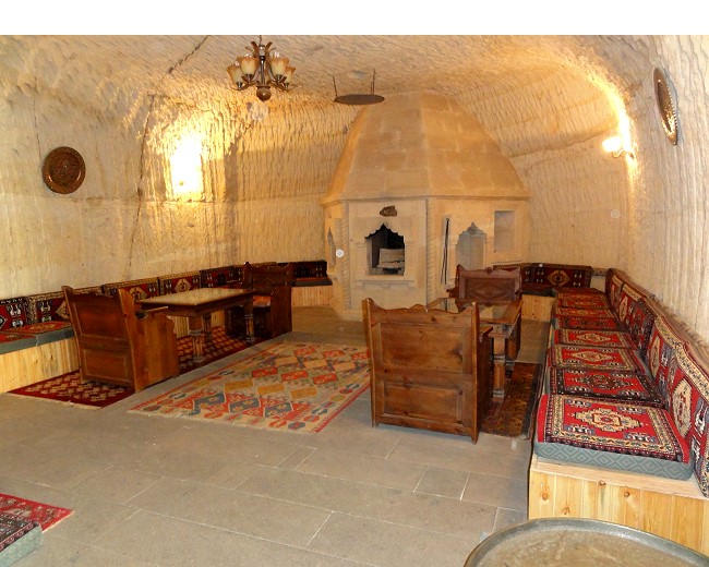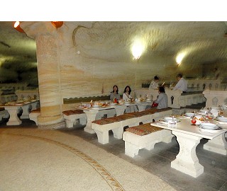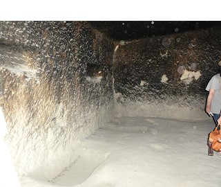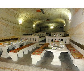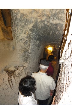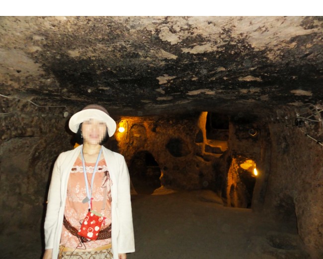 地下都市カイマクルは8層で構成されている住居跡で、その5層までを見て歩きます。まるで蟻の巣のように地下に広がる都市は迫害を受けたキリスト教徒達がせっせと掘って何万人もが生活していた住居跡で、1960頃偶然に発見されたらしい。