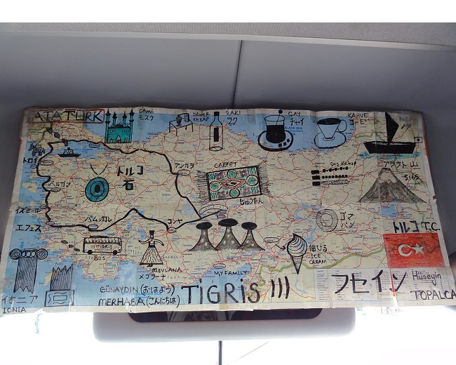 バスの中に、フセインが手作りした日本語のマップが貼ってありました。良くできています。彼はとてもトルコを愛しているインテリで、ほんとに流ちょうな日本語で無茶苦茶丁寧で(逆に丁寧すぎて時間がかかる)詳しいガイドでした