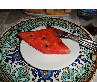 デザートはトルコ伝統のお菓子、バクラバかフルーツか選べました。迷う事無くスイカ選択