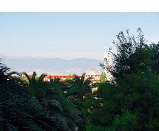 ホテルの部屋から見えていたモスク、朝4時半きっかりにコーランが大音量で流れて目が覚めた ホテルの壁が薄いからよ〜聞こえるんだな・・・ |