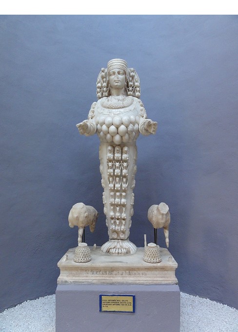 | アルテミス像。胸にたくさんの乳房がついているのが特徴 |