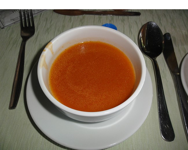 | 本日のメニューはトマトスープ。うん、普通にイケます。 |