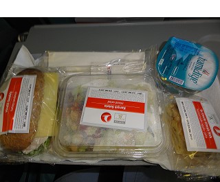 1時間程度のフライトなのにトルコ国内線は軽食が出ます。パンは固いけど味があって美味しい