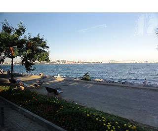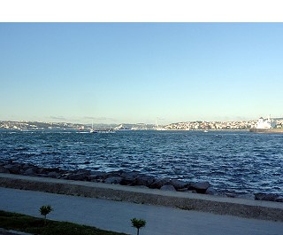| ホテルまで1時間ほどバスで走ります。ボスポラス海峡が右手にずっと見えますが、かなり波が高いようです |