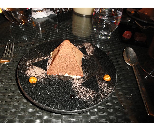 こちらはデザート チョコレートとプラリネとアイスヘーゼルナッツのパフェクランチ。ピラミッド型してる。