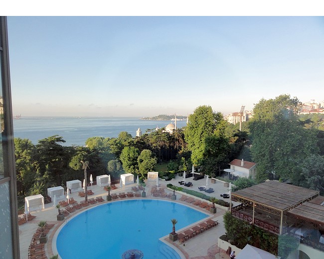 お部屋からボスポラス海峡が見えます。お天気がいいな〜 今回のトルコも本当に天気に恵まれ、私の晴れ女爆裂の旅行になりました。暑すぎるのが難点 |
