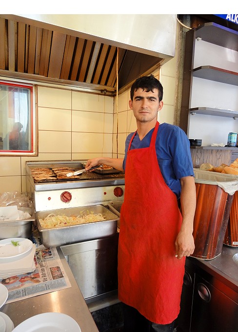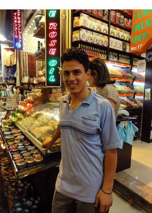 | お兄さん、カメラ目線ですねぇ。ちなみにトルコの商店で働くのは絶対男性。女性は買い物客以外は見ませんでした。 |