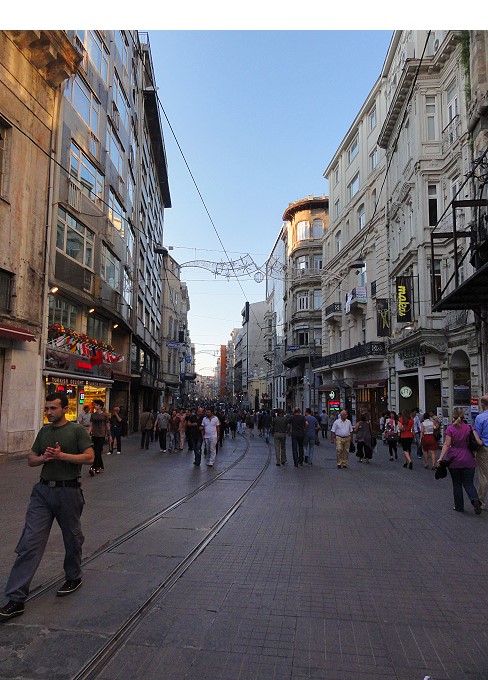 タクシム広場につながっているショッピング街。路面電車も走っています。これに乗ってこられたら良かったのだけど、乗り場がよくわからなかった |