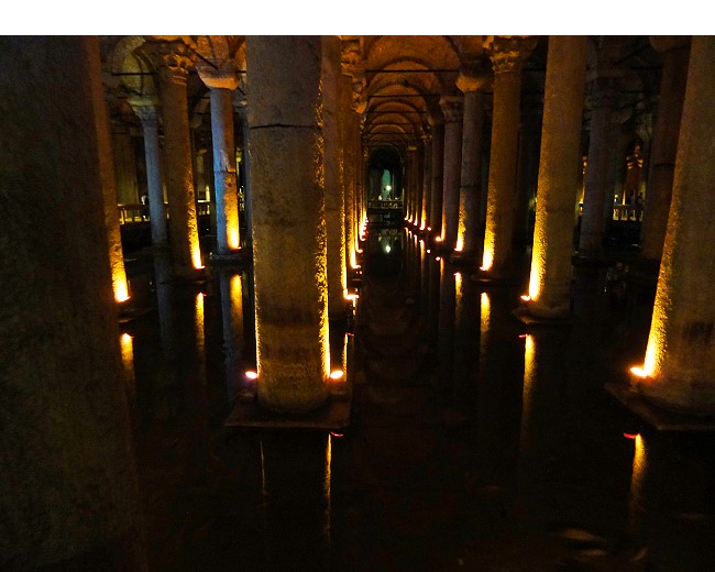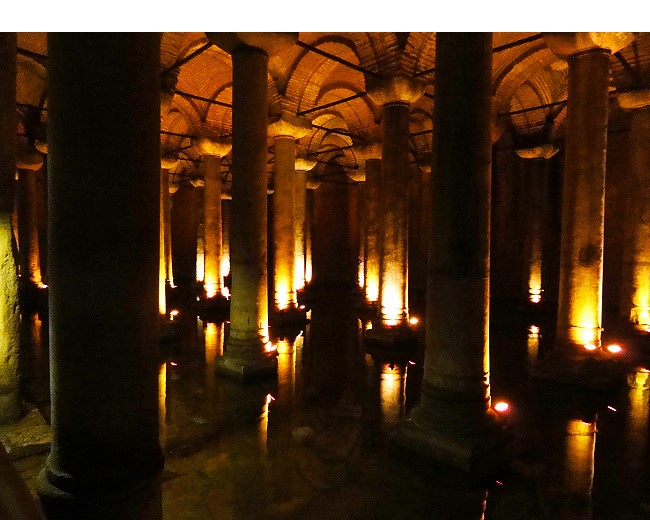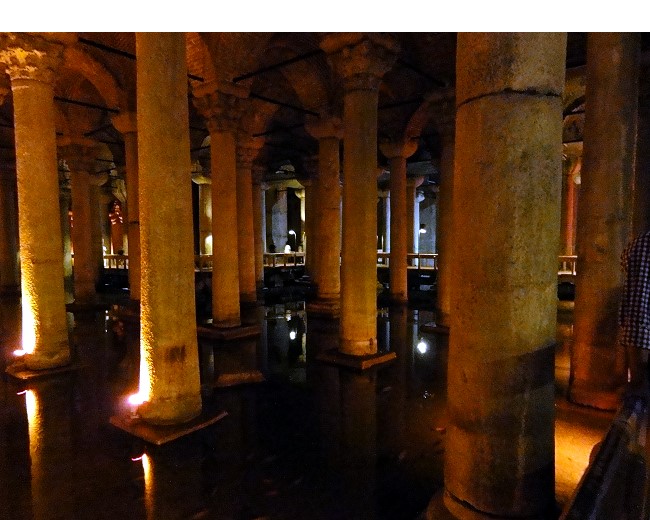 東ローマ帝国の大貯水槽で、昔は中庭もある裁判や商業に利用されていたものを掘り下げて貯水池にしたといいます |