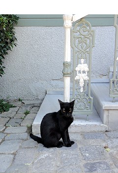 黒いにゃんコ が玄関前に。かわいい〜 |