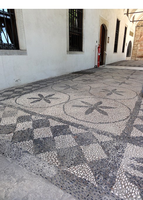 石で綺麗に描かれた廊下が目を引きました。歩きづらいですが |