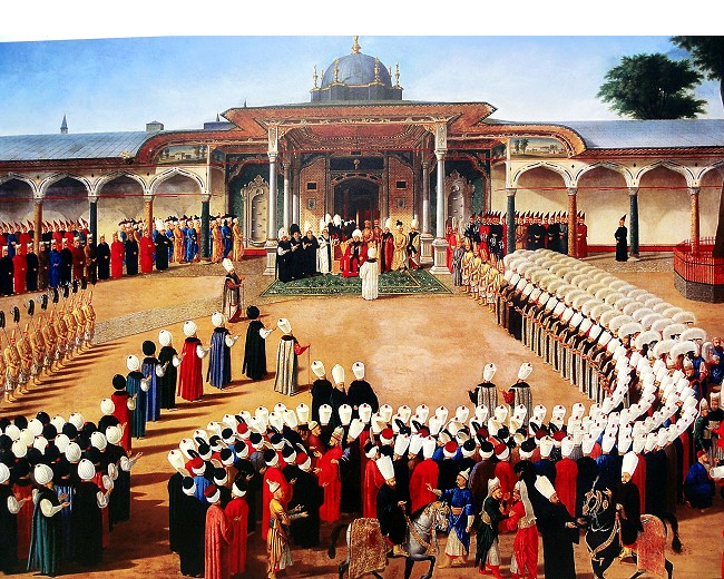 内廷の正門「幸福の門」の前で行われていたスルタン の儀式でしょうね。何かすご〜い