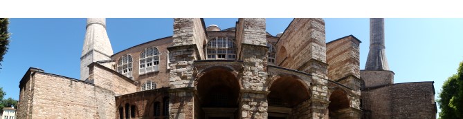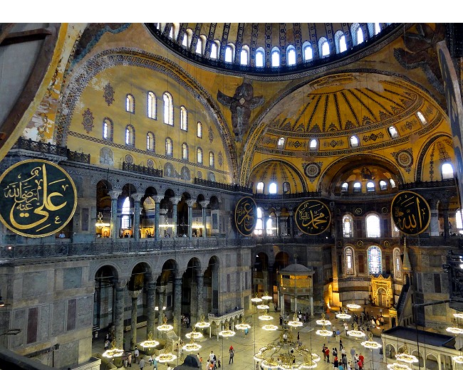東ローマ帝国時代に正統派キリスト教の大聖堂として建てたけれど、現代に至るまでに何度も侵略や地震や火事などで派の違うモスクになったり、教会になったり、作り変えられたのでへんてこな造りになってます。