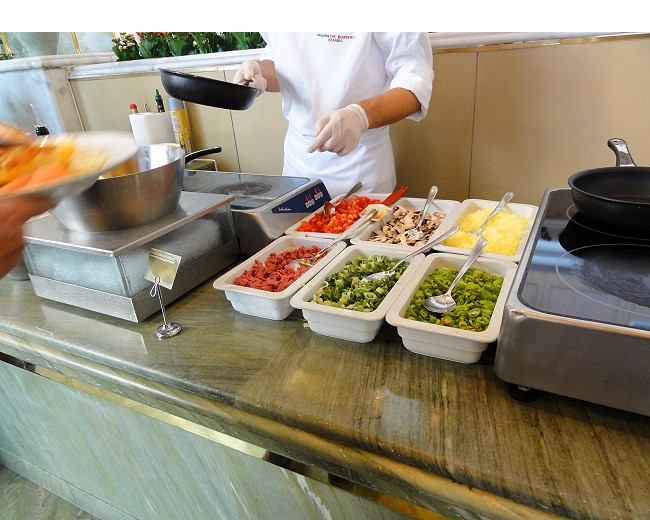 卵料理も好きな具材で目の前で作ってくれますよ |