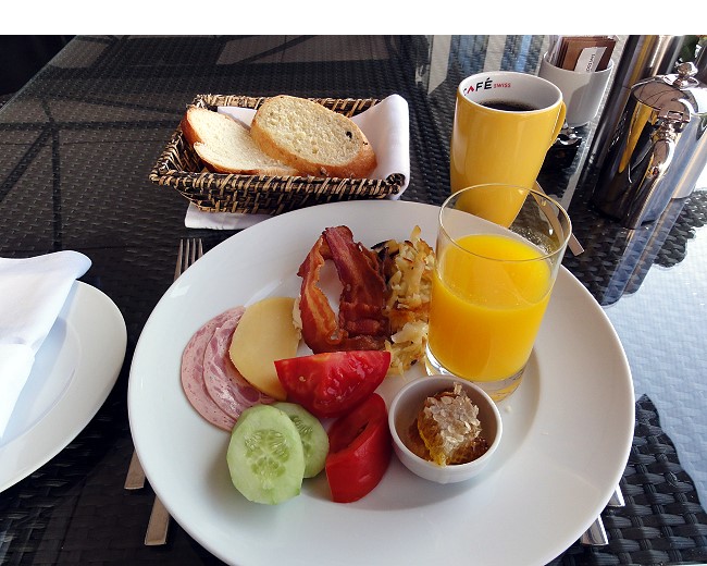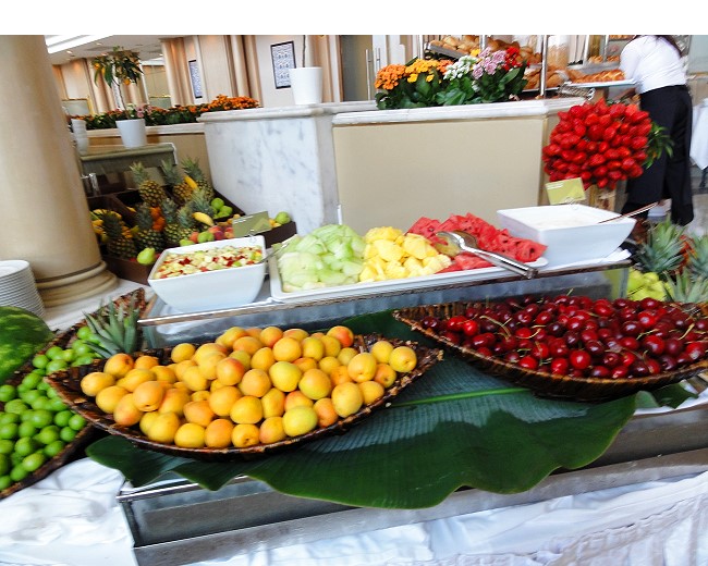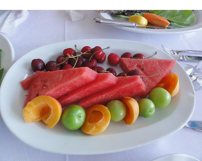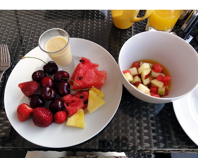 フルーツ盛りだくさん。このチェリー食べられるのも今日が最後かぁ、、 |