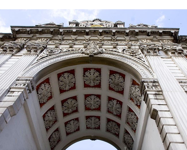 皇帝の門を入って振り返るとこんな色。鮮やかな色だ事。 |
