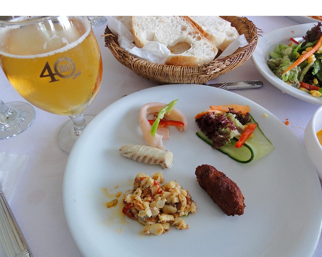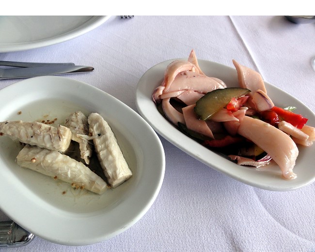 | シーフードの店らしく、どんどん新鮮なシーフードが出てきます。イカのマリネとサバ |