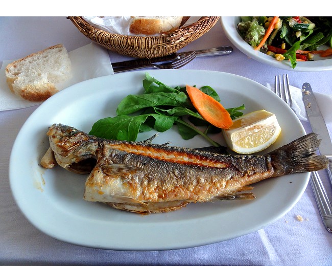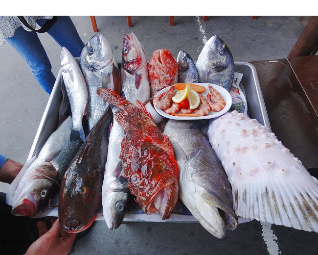 | こちらは店内で客が選ぶための魚のワゴン。どうやらこれを見せて調理を頼むというシステムのようです。チヌ、タイ、ハタ、カサゴ、カナガシラ、スズキ、などですね。魚の種類は日本と近いみたいです |
